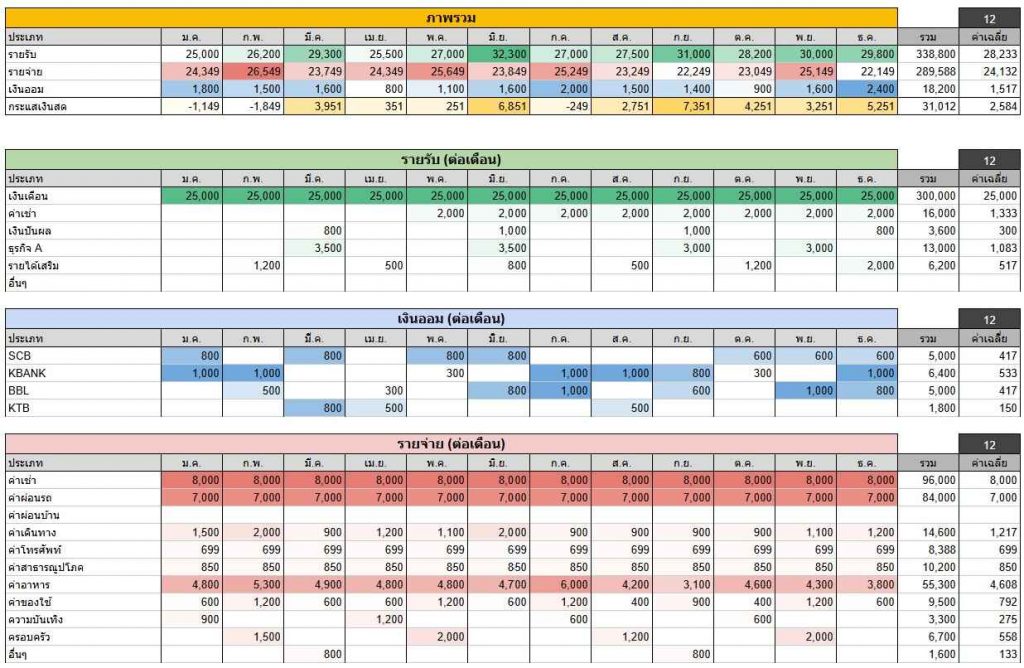 - ใส่ข้อมูลรายรับ รายจ่าย และเงินออมของแต่ละเดือน