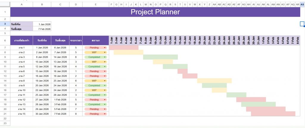 จากประสบการณ์ที่ผมแนะนำเพื่อนๆ มา การมี Project Planner ที่มองเห็นเป็น “แถบเวลา” (Timeline) แบบนี้ ช่วยให้เราเลิกนิสัย “ผลัดวันประกันพรุ่ง” ได้ดีมากเลยครับ เพราะเราจะเห็นเลยว่าถ้าวันนี้ไม่เริ่มงาน แถบสีมันจะไปเบียดกับงานอื่นในอนาคตแน่นอน