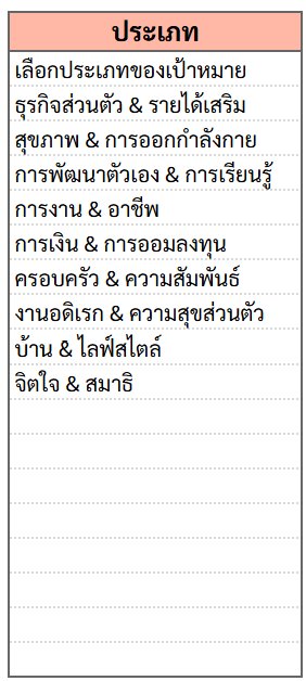 1. ตั้งชื่อ Goal และกำหนดหมวดหมู่