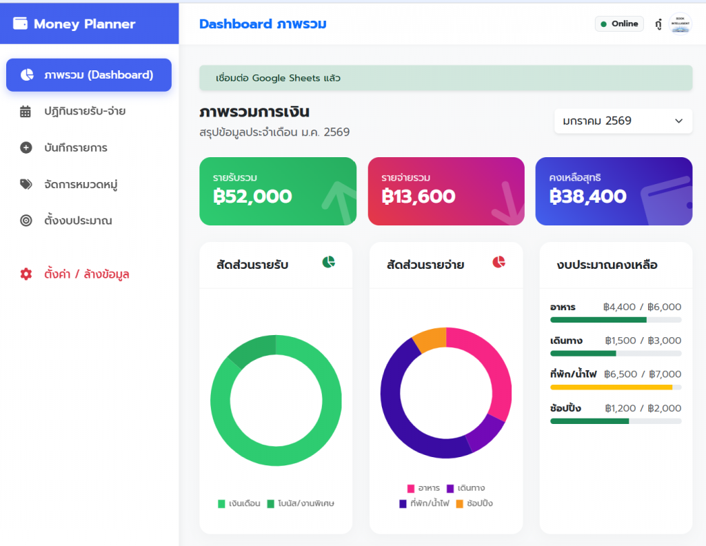 แจกฟรี! ระบบบัญชีรายรับรายจ่าย Web App เชื่อม Google Sheet สวย ใช้ง่าย ไม่ต้องง้อแอปเสียเงิน (Money Planner) (1)